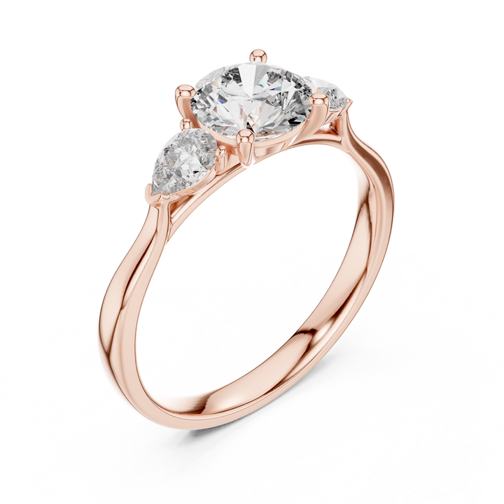 Celebrate everlasting brilliance with this three-stone lab grown diamond ring, exquisitely crafted in 9kt, 14kt, or 18kt gold and featuring a radiant round-cut center diamond with sparkling pear-shaped side stones for a modern yet timeless design. Perfectly aligned with 2025 jewellery trends in sustainable luxury, minimalist elegance, and affordable fine jewellery, this ring is set with ethically sourced, conflict-free lab created diamonds that deliver unmatched sparkle while embracing eco-friendly and traceable craftsmanship. A top choice for Gen Z and Millennial shoppers seeking trending engagement rings, everyday luxury, or stackable statement pieces, this design embodies the perfect balance of timeless beauty and conscious living.