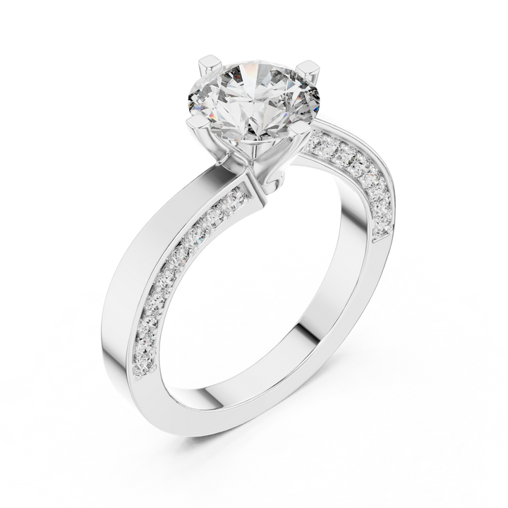 Elevate your love story with this round brilliant lab-grown diamond solitaire ring with pavé band, expertly crafted in 9kt, 14kt, or 18kt gold with options in rose, yellow, or white gold. Featuring an eco-friendly, conflict-free diamond, this sustainable engagement ring embodies ethical fine jewellery and the elegance of sustainable luxury, making it the perfect choice for those seeking a modern solitaire design that blends timeless sparkle with today’s trend of minimalist yet bold jewellery.