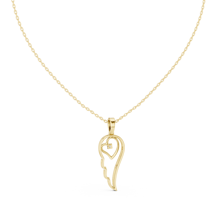 The Angel Heart Wing Pendant is a charming and elegant jewelry piece that features a Round-shaped diamond embraced by delicately designed wings. This playful design symbolizes love, protection, and freedom, making it a meaningful accessory for everyday wear or special occasions. Crafted with precision, the pendant combines modern aesthetics with emotional appeal, perfect for those who cherish unique and stylish expressions of sentiment.