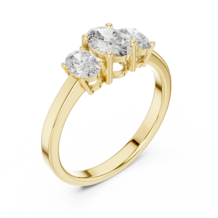 Make a bold yet timeless statement with this three-stone oval lab grown diamond ring, beautifully crafted in 9kt, 14kt, or 18kt gold and designed with three brilliant oval-cut diamonds that radiate sparkle from every angle. Perfectly aligned with 2025 jewellery trends in sustainable luxury, affordable fine jewellery, and minimalist elegance, this ring is set with ethically sourced, conflict-free lab created diamonds for a dazzling look that’s also eco-friendly and traceable. Ideal as a trending engagement ring, anniversary gift, or everyday luxury piece, it appeals to Gen Z and Millennial shoppers seeking ethical sparkle, stackable statement rings, and modern romance.