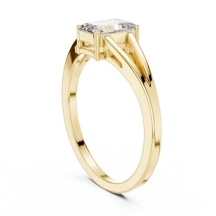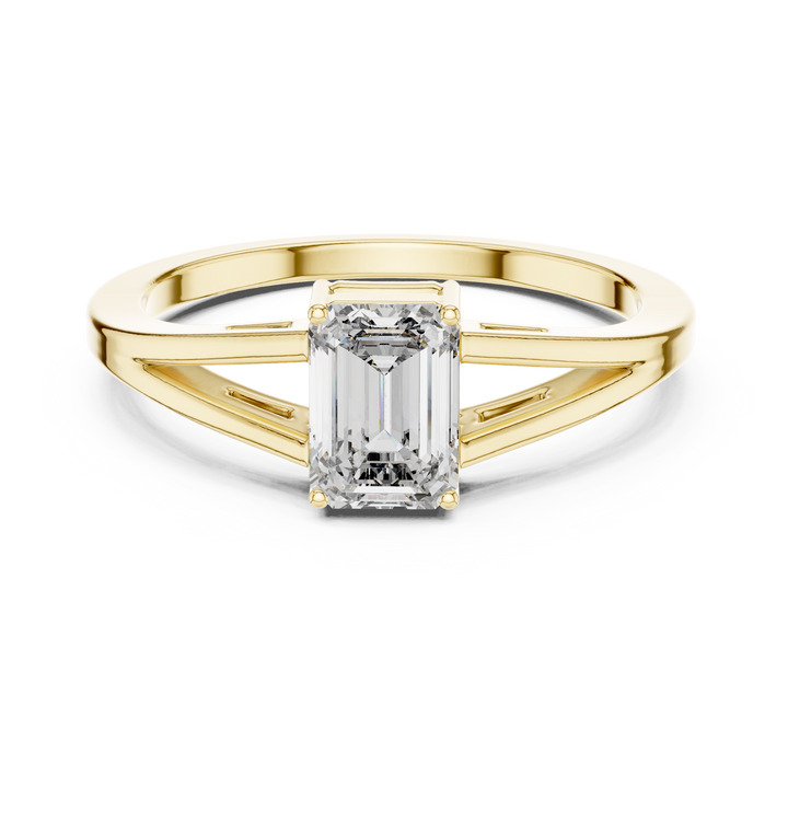 Celebrate modern sophistication with this emerald cut lab-grown diamond ring, crafted in 9kt, 14kt, or 18kt gold with options in rose, yellow, or white gold. Featuring a sleek split-shank design, this sustainable engagement ring showcases the brilliance of an eco-friendly, conflict-free diamond, reflecting today’s trend of minimalist yet bold jewellery. Perfect as an ethical fine jewellery statement piece or a timeless symbol of love, it embodies sustainable luxury, blending contemporary style with responsible craftsmanship.