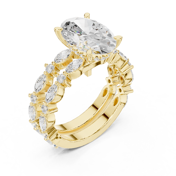 Elevate your style with this stunning oval cut lab grown diamond ring, crafted in 9kt, 14kt & 18kt gold for timeless sophistication. The brilliant oval center stone radiates unmatched sparkle, beautifully enhanced by a dual band of round lab grown diamonds for extra brilliance. Perfect as an engagement ring, wedding ring, or luxury fashion accessory, this eco-friendly design embodies the essence of sustainable fine jewellery. A trending favorite in lab grown diamond engagement rings for women, this piece is ideal for brides-to-be and fashion enthusiasts who desire affordable luxury, ethical elegance, and modern bridal jewellery.