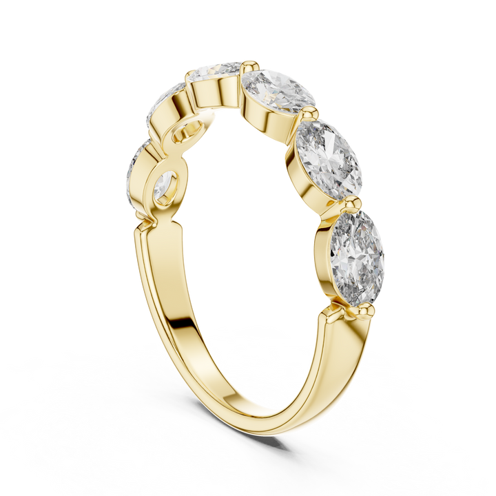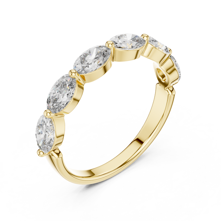 Elevate your style with our marquise lab grown diamond band ring, exquisitely crafted in 9kt, 14kt, and 18kt gold. Showcasing a row of perfectly aligned marquise-cut diamonds, this ring delivers maximum brilliance and modern sophistication. Ideal as a wedding band, anniversary ring, or stacking ring, it offers versatility for both everyday wear and special occasions. Ethically created and eco-friendly, our sustainable lab grown diamond jewellery allows you to embrace luxury with a conscious choice. A must-have for women seeking unique diamond bands that combine elegance, trend, and timeless beauty.