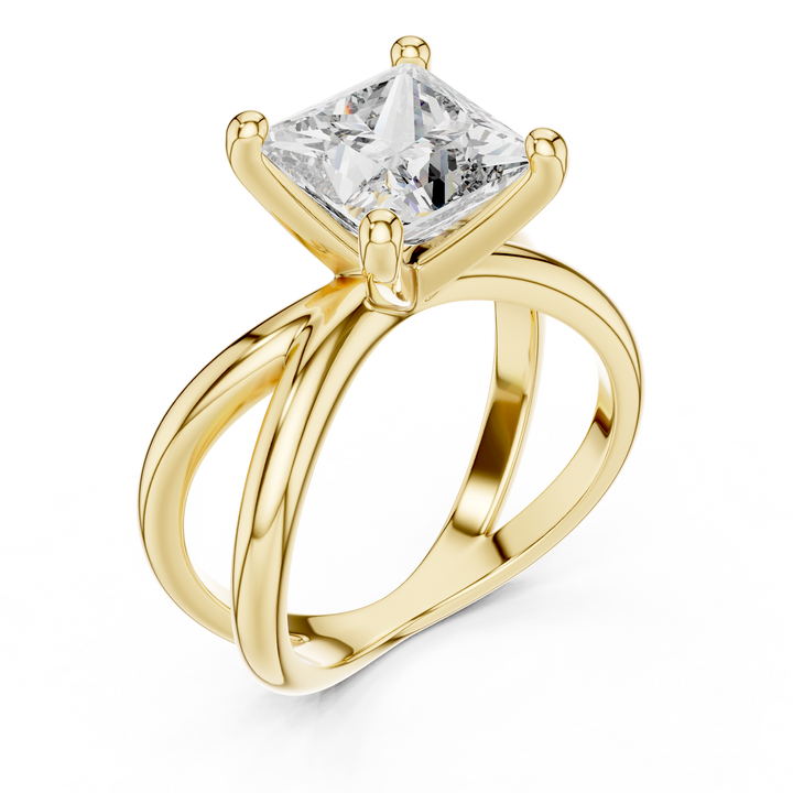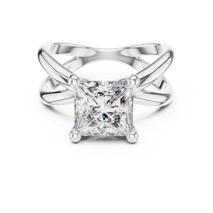 Showcase your style with this princess cut lab-grown diamond solitaire ring with a chic criss-cross band, crafted in 9kt, 14kt, or 18kt gold and available in rose, yellow, or white gold. Featuring an eco-friendly, conflict-free diamond, this sustainable engagement ring embodies the essence of ethical fine jewellery and the rising trend of sustainable luxury. Perfect for those seeking a modern solitaire ring with a distinctive flair, this unique engagement ring combines minimalist design with timeless brilliance, making it a standout choice in lab-grown diamond jewellery.
