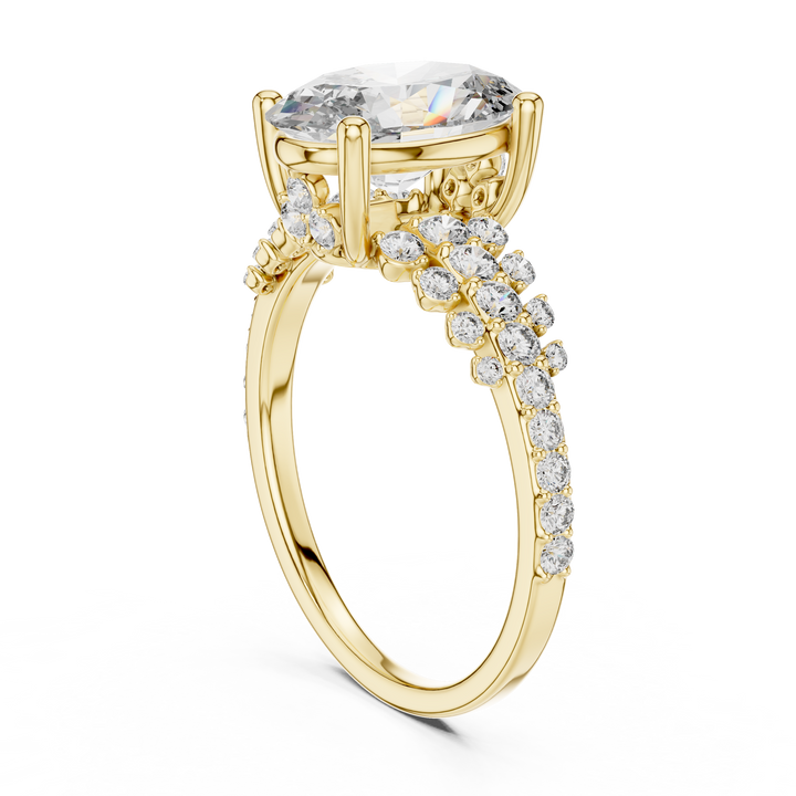 Celebrate love and individuality with this pear shaped lab-grown diamond engagement ring, featuring a hidden halo and pavé band that accentuates the brilliance of its elegant center stone. Crafted in your choice of 9kt, 14kt, or 18kt gold (rose, yellow or white), this sustainable engagement ring showcases a conflict-free diamond in a vintage-inspired setting with modern flair. With its nature-inspired contours and refined detailing, it perfectly blends ethical fine jewellery arrangements, minimalist solitaire spirit, and the beauty of a customised, statement-making ring that aligns with 2025’s top trends.
