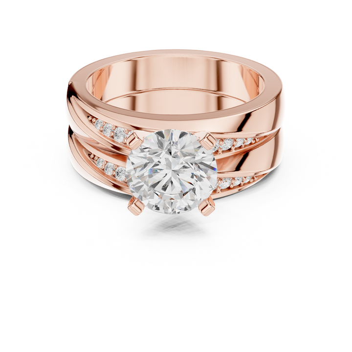 Make a bold statement with this round cut lab-grown diamond engagement ring, showcasing a dazzling solitaire set on a striking wide split shank pavé band, meticulously handcrafted in 9kt, 14kt, or 18kt gold with choices of rose, yellow, or white gold. Featuring an eco-friendly, conflict-free diamond, this sustainable engagement ring highlights the beauty of ethical fine jewellery and the modern appeal of sustainable luxury jewellery. Designed for couples who desire a bold engagement ring design that balances brilliance with strength, this lab-grown diamond ring is the perfect symbol of love, responsibility, and contemporary elegance.