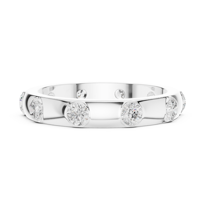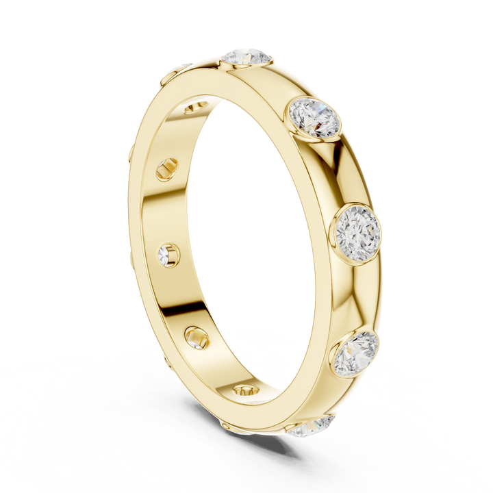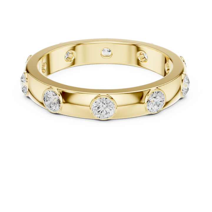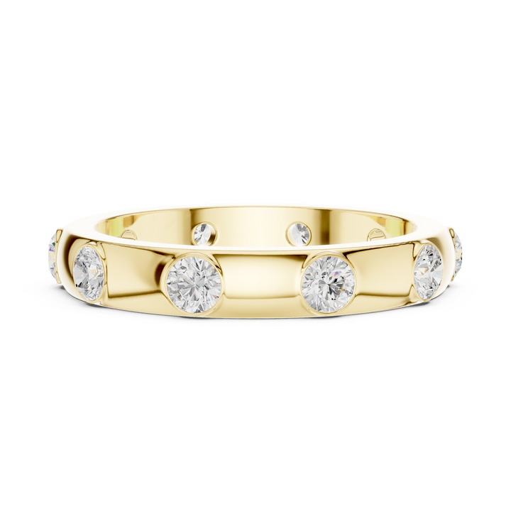 Discover timeless elegance with this lab grown diamond bezel set band ring, expertly crafted in 9kt, 14kt, or 18kt gold. Featuring round brilliant lab created diamonds securely set in sleek bezel settings, this band combines modern sophistication with everyday wearability. Perfect as a wedding band, stacking ring, or anniversary gift, it offers durability, comfort, and sustainable luxury. Ethically sourced and eco-friendly, this lab created diamond jewellery is an ideal choice for those who want brilliance with a conscious touch.