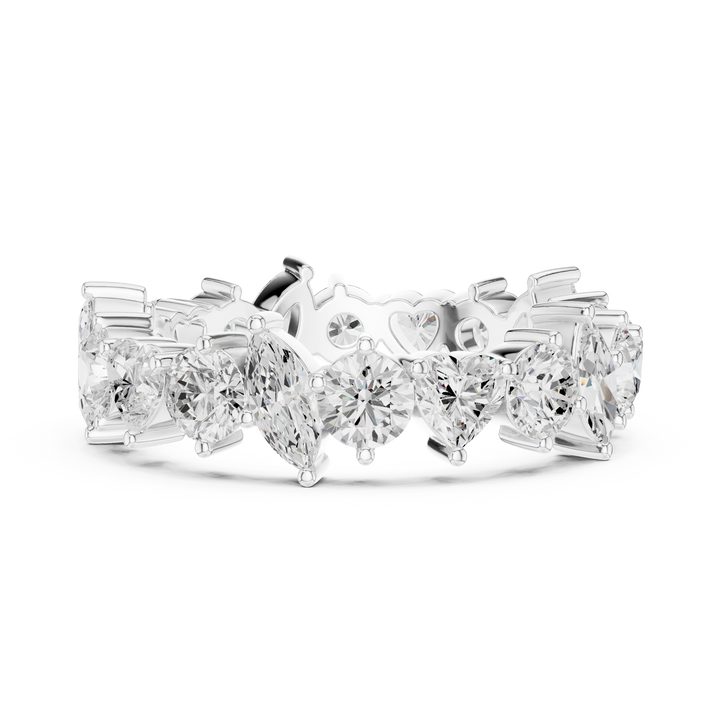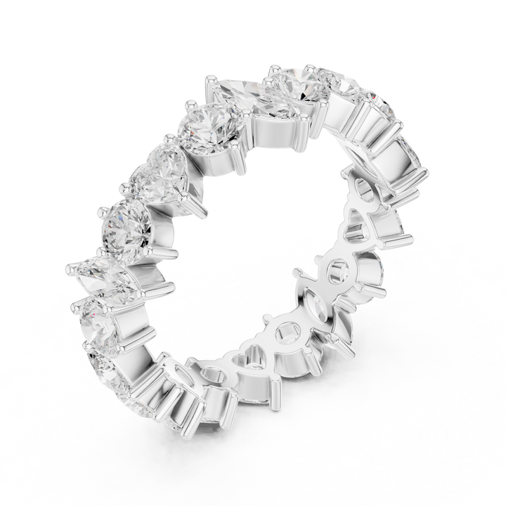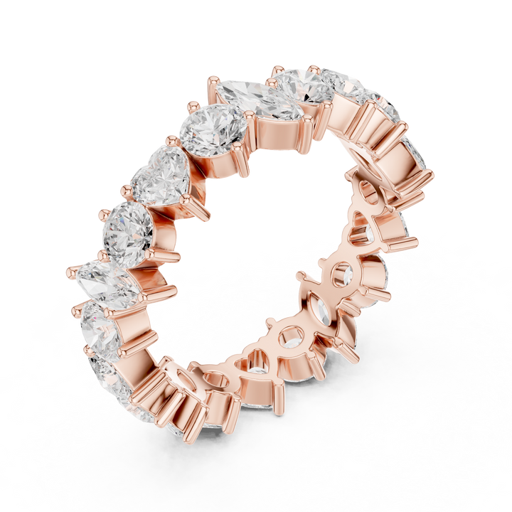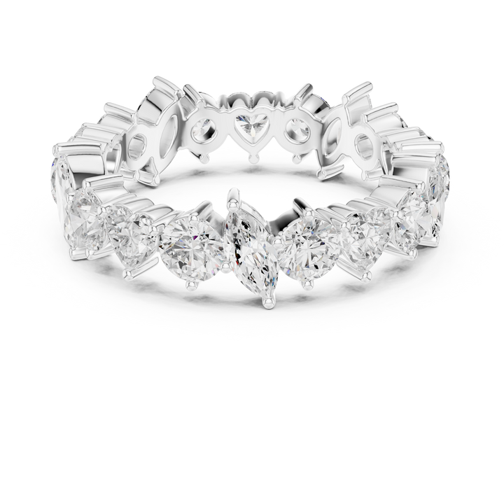 Celebrate everlasting elegance with this lab grown diamond marquise and round eternity band, meticulously crafted in your choice of 9kt, 14kt, or 18kt gold. Featuring alternating marquise and round cut lab created diamonds, this band offers maximum brilliance and a unique design perfect for a wedding band, anniversary ring, or luxury stacking band. Ethically made and eco-friendly, our lab grown diamond jewellery combines sustainable beauty with timeless sophistication, making it an ideal choice for modern brides and style-conscious jewellery lovers.