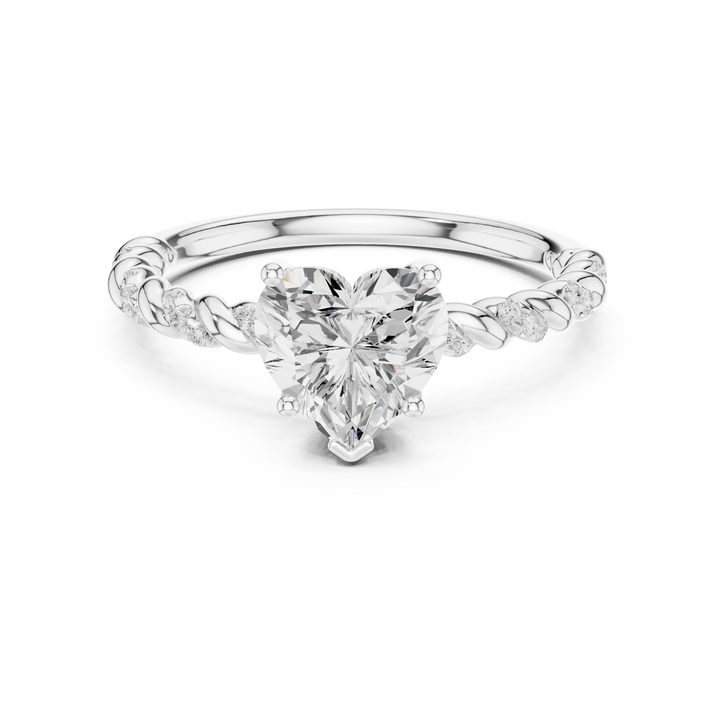 Express everlasting romance with this heart shaped lab-grown diamond engagement ring, featuring a sparkling solitaire set on a twisted pavé band, expertly handcrafted in 9kt, 14kt, or 18kt gold with options in rose, yellow, or white gold. Showcasing an eco-friendly, conflict-free diamond, this sustainable engagement ring reflects the beauty of ethical fine jewellery and the modern demand for sustainable luxury jewellery. A perfect choice for those seeking a romantic diamond ring with a unique engagement ring design, it blends timeless sparkle with responsible craftsmanship, making it a standout in lab-grown diamond jewellery.