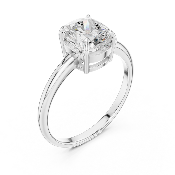 Celebrate everlasting beauty with this cushion cut lab-grown diamond solitaire ring, elegantly crafted in 9kt, 14kt, or 18kt gold and available in rose, yellow, or white gold. Showcasing an eco-friendly, conflict-free diamond, this sustainable engagement ring reflects the modern demand for ethical fine jewellery and sustainable luxury jewellery. With its radiant cushion cut and sleek modern solitaire design, this minimalist engagement ring is the perfect choice for couples seeking a timeless lab-grown diamond ring that combines brilliance, elegance, and responsible craftsmanship.
