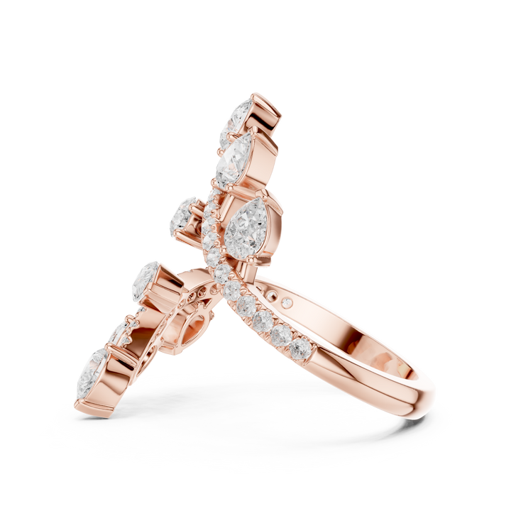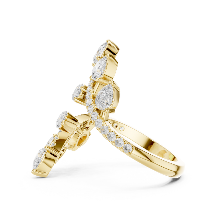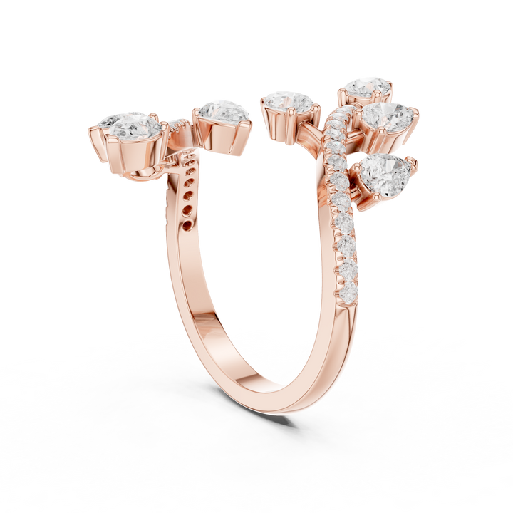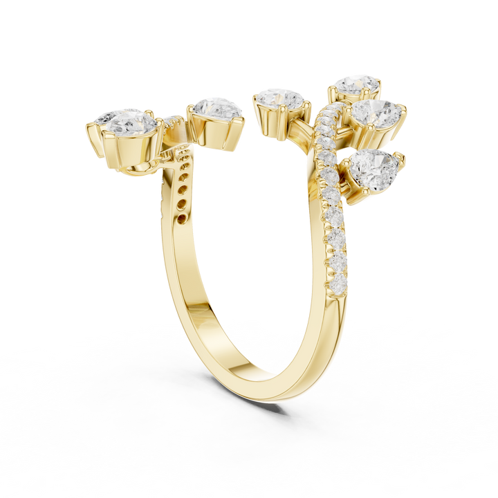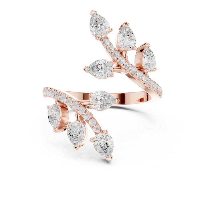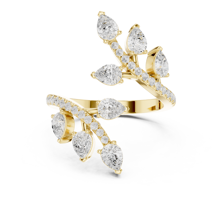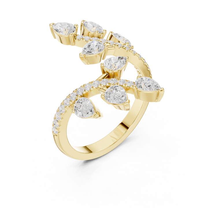 Add a touch of nature-inspired elegance with this lab grown diamond leaf ring, crafted to perfection in 9kt, 14kt & 18kt gold. Designed with brilliant pear-cut lab grown diamonds arranged like delicate leaves, this ring symbolizes growth, beauty, and timeless grace. Perfect as a statement diamond ring, anniversary band, or promise ring, it blends sustainable luxury with exquisite craftsmanship. Ethical, eco-friendly, and affordable, this nature-inspired diamond jewellery is ideal for women who love modern fashion trends, stackable rings, and everyday luxury.