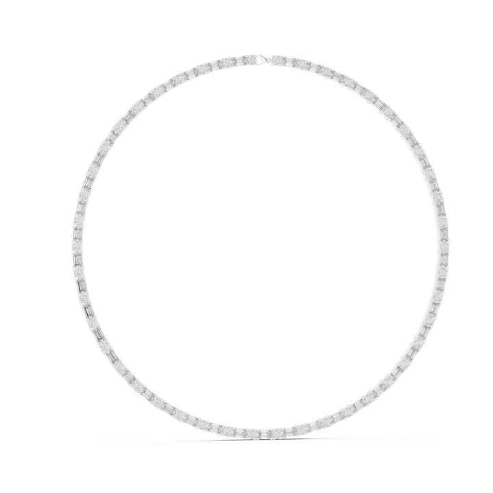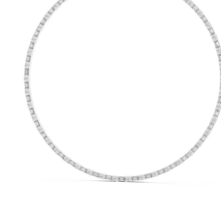 Lattice Prism Baguette Necklace by Aurelia Diamonds features lab-grown baguette diamonds arranged in an intricate lattice pattern that refracts light into mesmerizing brilliance. This sophisticated pendant celebrates geometric precision with contemporary elegance and authentic sparkle. Our lab-grown diamond necklace combines architectural design with sustainable sourcing, delivering radiant luxury with environmental consciousness. Discover lattice diamond jewelry designed by Aurelia Diamonds—where prismatic geometry meets ethical brilliance in a strikingly refined accessory.