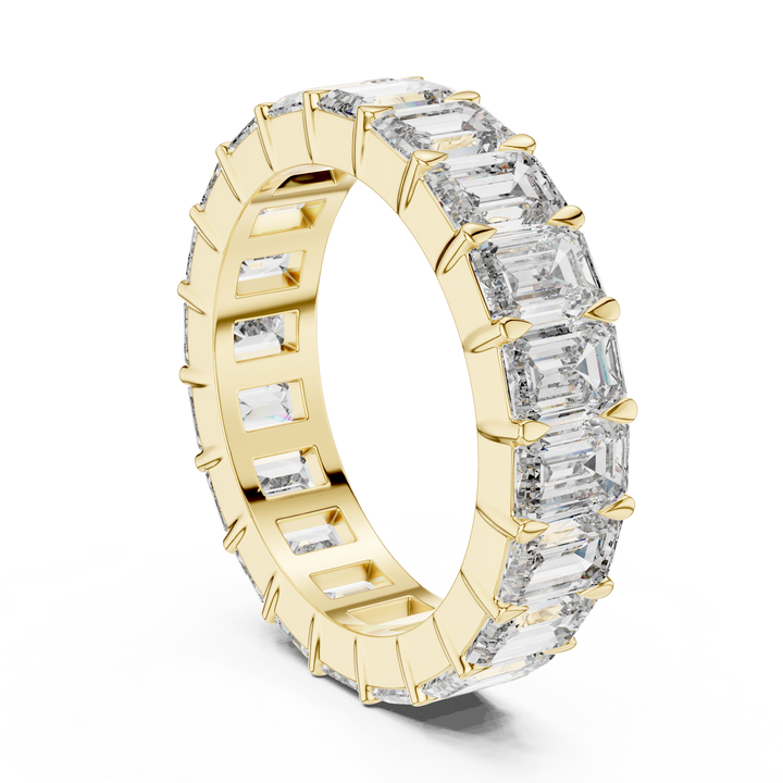 Make a bold statement with this lab grown diamond emerald cut eternity band, expertly crafted in 9kt, 14kt, or 18kt gold. Showcasing a continuous row of ethically created emerald cut diamonds, this timeless design radiates brilliance and sophistication. Perfect as a wedding band, anniversary ring, or luxury stacking ring, it combines sustainable craftsmanship with modern elegance. Designed for both men and women, this lab created diamond eternity ring offers unmatched sparkle, durability, and eco-friendly luxury—making it the ultimate choice for those who value style and sustainability.