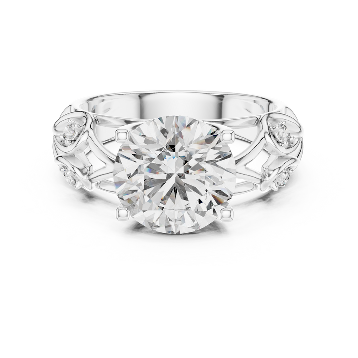 Capture timeless beauty with this round cut lab-grown diamond engagement ring, showcasing a brilliant solitaire set on an intricately detailed floral-inspired vintage band, handcrafted in 9kt, 14kt, or 18kt gold with options in rose, yellow, or white gold. Featuring an eco-friendly, conflict-free diamond, this sustainable engagement ring embodies the elegance of ethical fine jewellery and the growing trend of sustainable luxury jewellery. Perfect for couples searching for a unique engagement ring design with vintage inspired charm, this lab-grown diamond ring blends artistry, brilliance, and responsible craftsmanship into an unforgettable symbol of love.