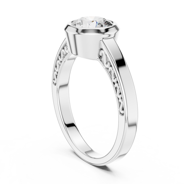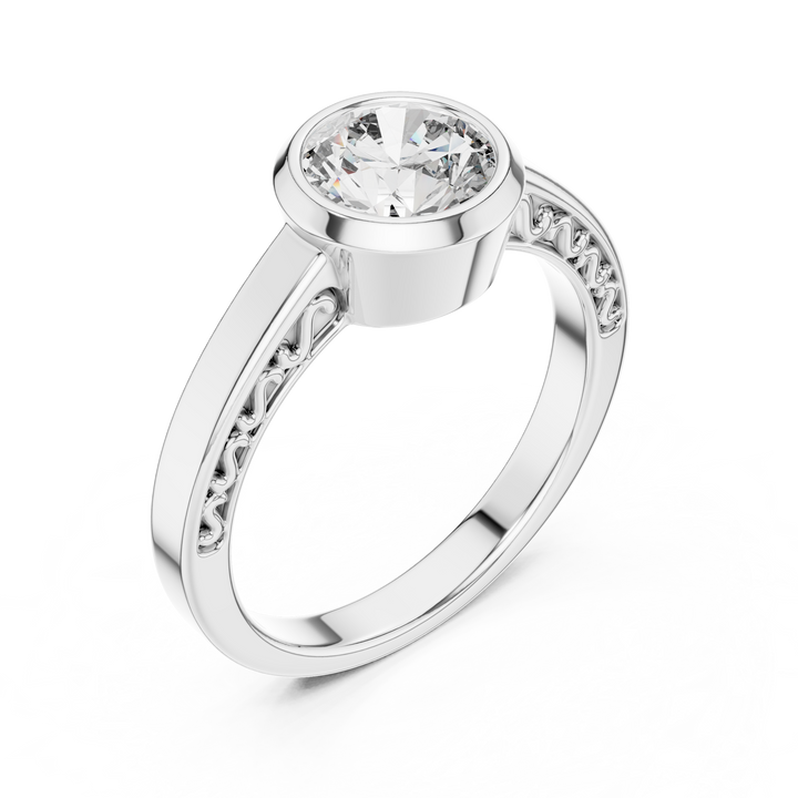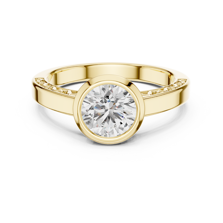 Discover timeless elegance with this bezel-set lab grown diamond ring, crafted in 9kt, 14kt, and 18kt gold. Showcasing a brilliant round-cut solitaire diamond encased in a modern bezel setting, the ring is further accented with delicate side stones on the band, adding a touch of extra sparkle. Perfect for those who value sustainable luxury, conflict-free diamonds, and trending minimalist engagement ring styles in 2025, this design blends sophistication with everyday wearability. Whether chosen as an engagement ring, promise ring, or anniversary gift, this eco-friendly lab created diamond ring is a radiant symbol of love and style.